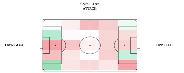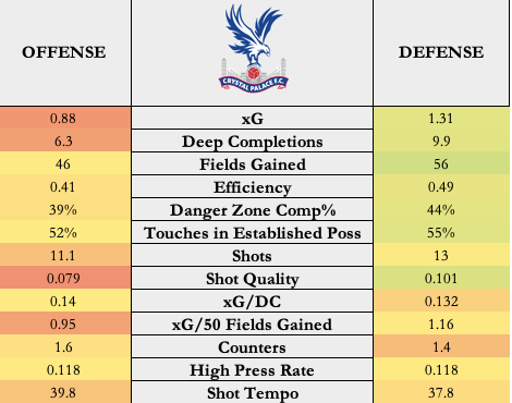 Palace essentially never cross the ball, they have played the fewest crosses in the league. They are also quite bad at converting crosses into shots.