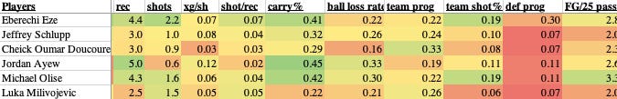 Olise and Eze are basically attackers, not doing defensive work but returning quality and extremely similar production. Watching a game they are truly hard to tell apart.