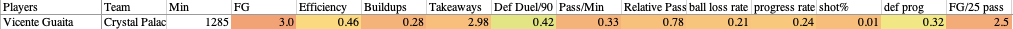 Shot wise and progression wise they look a bit close to mid-table but the xG and danger zone completion ratio signify a team that could be looking back at the relegation spots. Efficiency and converting the broad metrics into the cutting edge eludes Palace.
