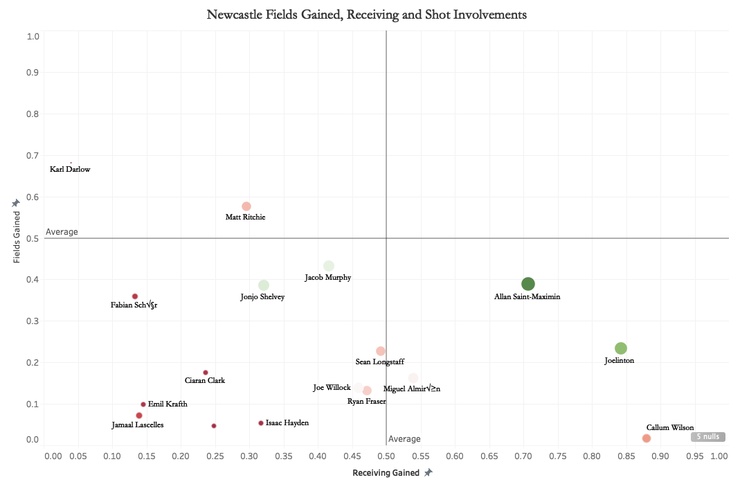 Standout Positives: ASM and Joelinton deliver both as receiving outlets and shot creators on a team with lots of players who are contributing nothing with the ball.